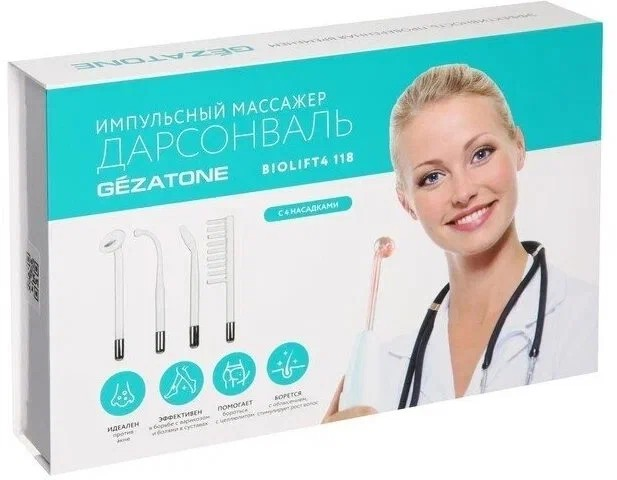 ⚡ Gezatone Biolift 4 118 ИП — дарсонваль для волос, лица и тела, ф/п, 4 насадки