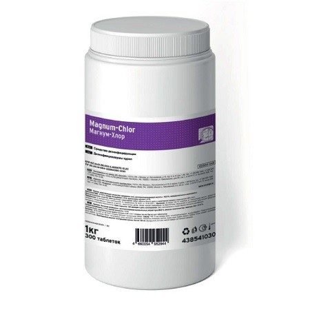 🧴 Дезинфицирующее средство «Магнум‑Хлор» (хлорные таблетки), 300 шт., банка 1 кг