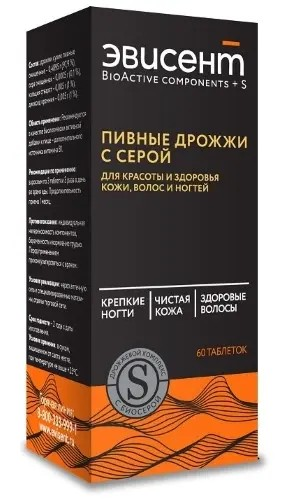 🌿 Эвисент Пивные дрожжи + сера, таблетки, 60 шт