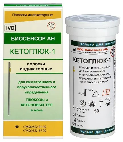 Тест-полоски Кетоглюк-1 предназначены для одновременного визуального качественного и полуколичественного определения глюкозы и кетоновых тел в моче человека. Используются для самоконтроля при сахарном диабете, а также для раннего выявления кетонурии и риска развития кетоацидоза.