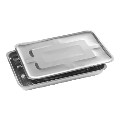 Лоток прямоугольный с крышкой ЛМПрК «МЕДИКОН» — универсальное медицинское изделие из высококачественной нержавеющей стали марки AISI 430, устойчивой к воздействию кислот, щелочей, дезинфицирующих средств и высоких температур.