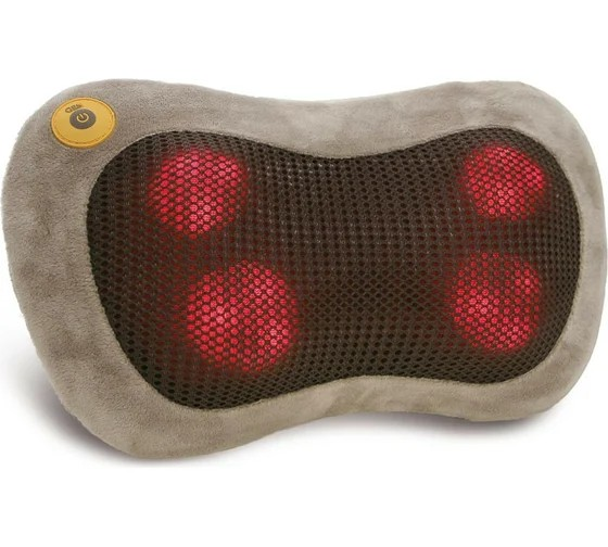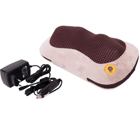 Медицинская массажная подушка с инфракрасным прогревом и 4 роликами для эффективного массажа шиацу. Подходит для массажа шеи, плеч и других частей тела. В комплекте — сетевой и автомобильный адаптеры: используйте дома или в дороге!