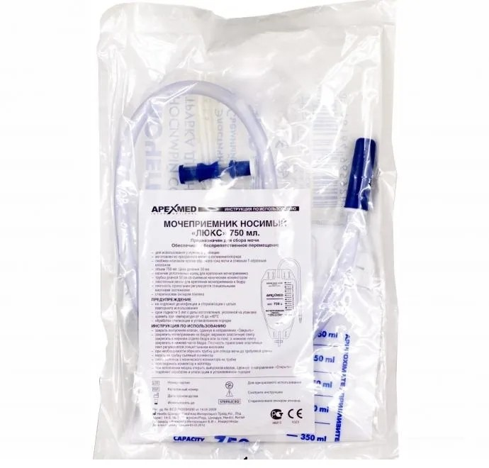 Мочеприемник ножной 750 мл предназначен для сбора мочи у пациентов, ведущих активный образ жизни.