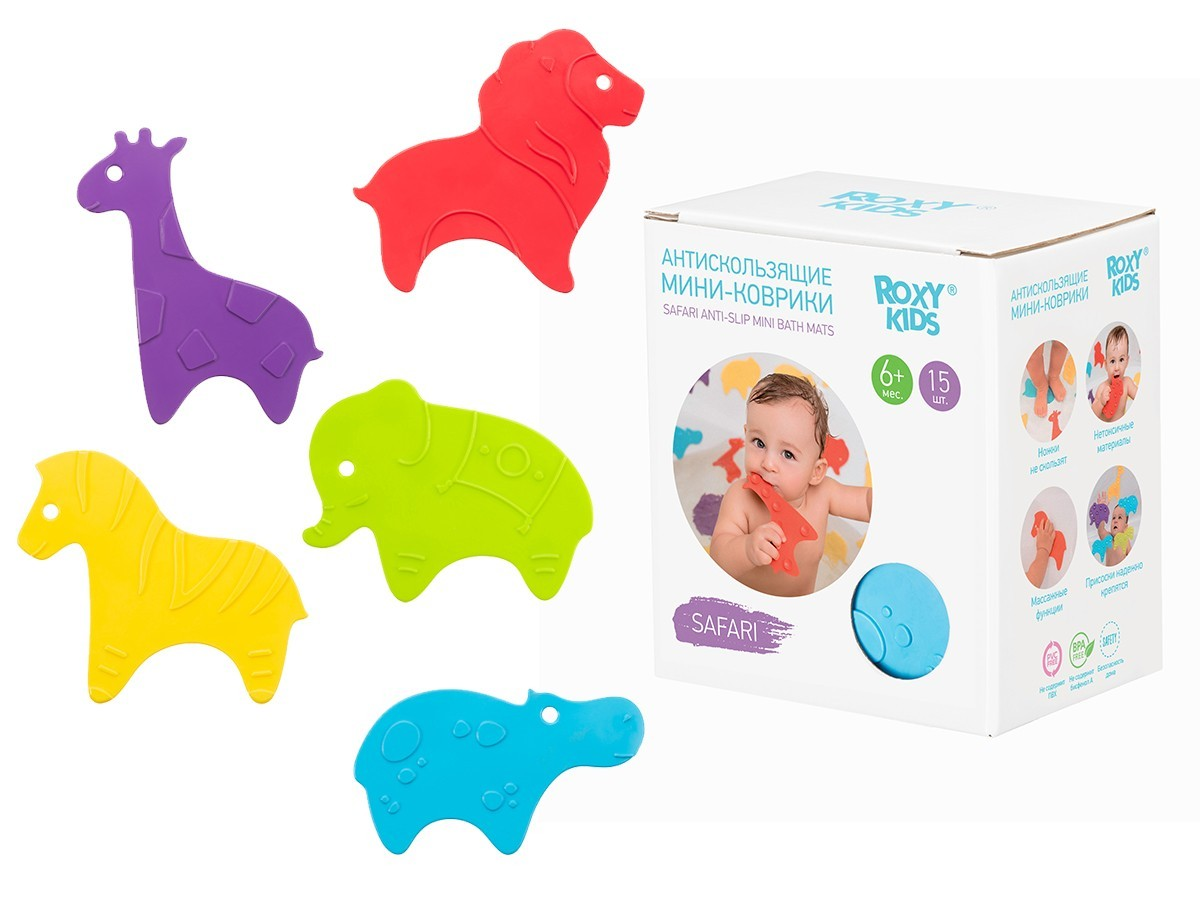 Мини-коврики SAFARI от ROXY-KIDS — это удобное и безопасное решение для купания и игр малыша. Коврики изготовлены из современного материала TPE, не содержат ПВХ и полностью лишены запаха. Они легко заменяют большой коврик, проще в уходе и быстрее сохнут.