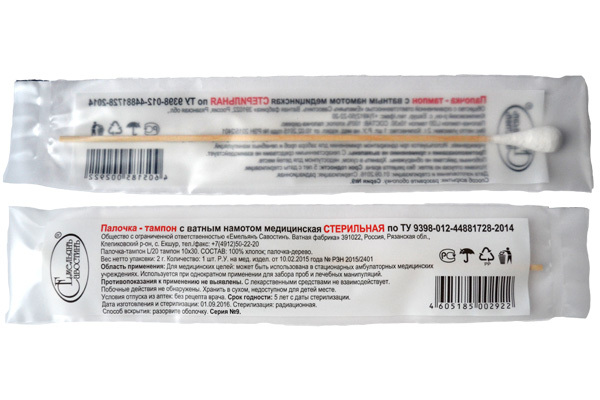 - Палочка тампон стерильная с ватным намотом индивидуальная упаковка