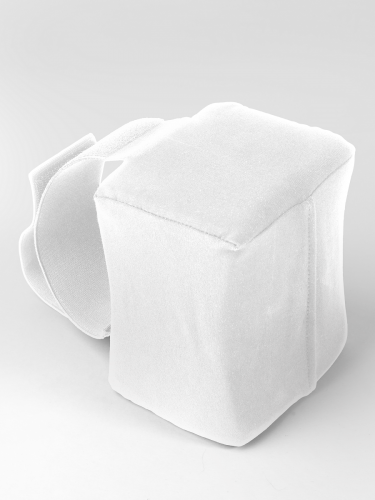 Разместить подушку между ногами и закрепить на одной ноге лентой с застёжкой «велкро».