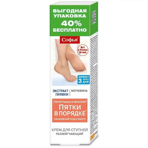 - Софья крем для ступней при натоптышах и сухих мозолях экстракт пиявки мочевина 125 мл