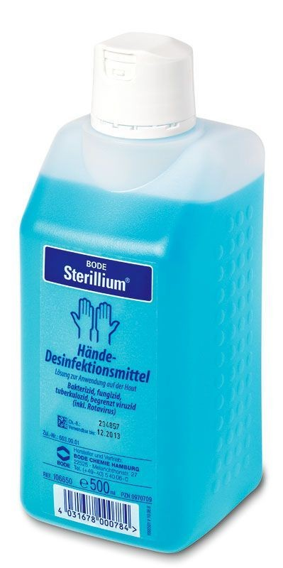 Стериллиум — профессиональный кожный антисептик для медицинского персонала и хирургов, предназначенный для гигиенической и хирургической обработки рук. Готовый к применению раствор в виде прозрачной ароматизированной жидкости со спиртовым запахом.