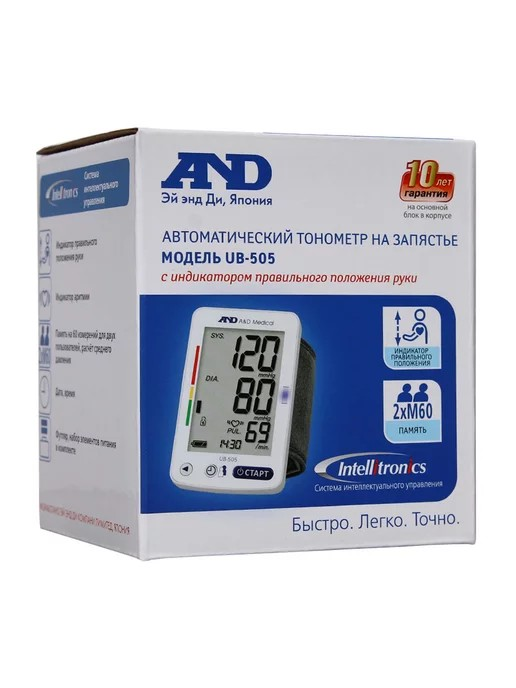 Автоматический тонометр AND UB-505 предназначен для точного измерения артериального давления и частоты пульса на запястье. Компактный прибор удобен для домашнего использования и контроля давления в течение дня.