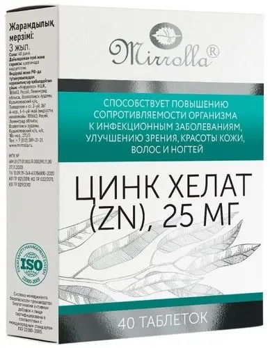 💊 Mirrolla Цинк Хелат (Zn) 25 мг, 40 таблеток